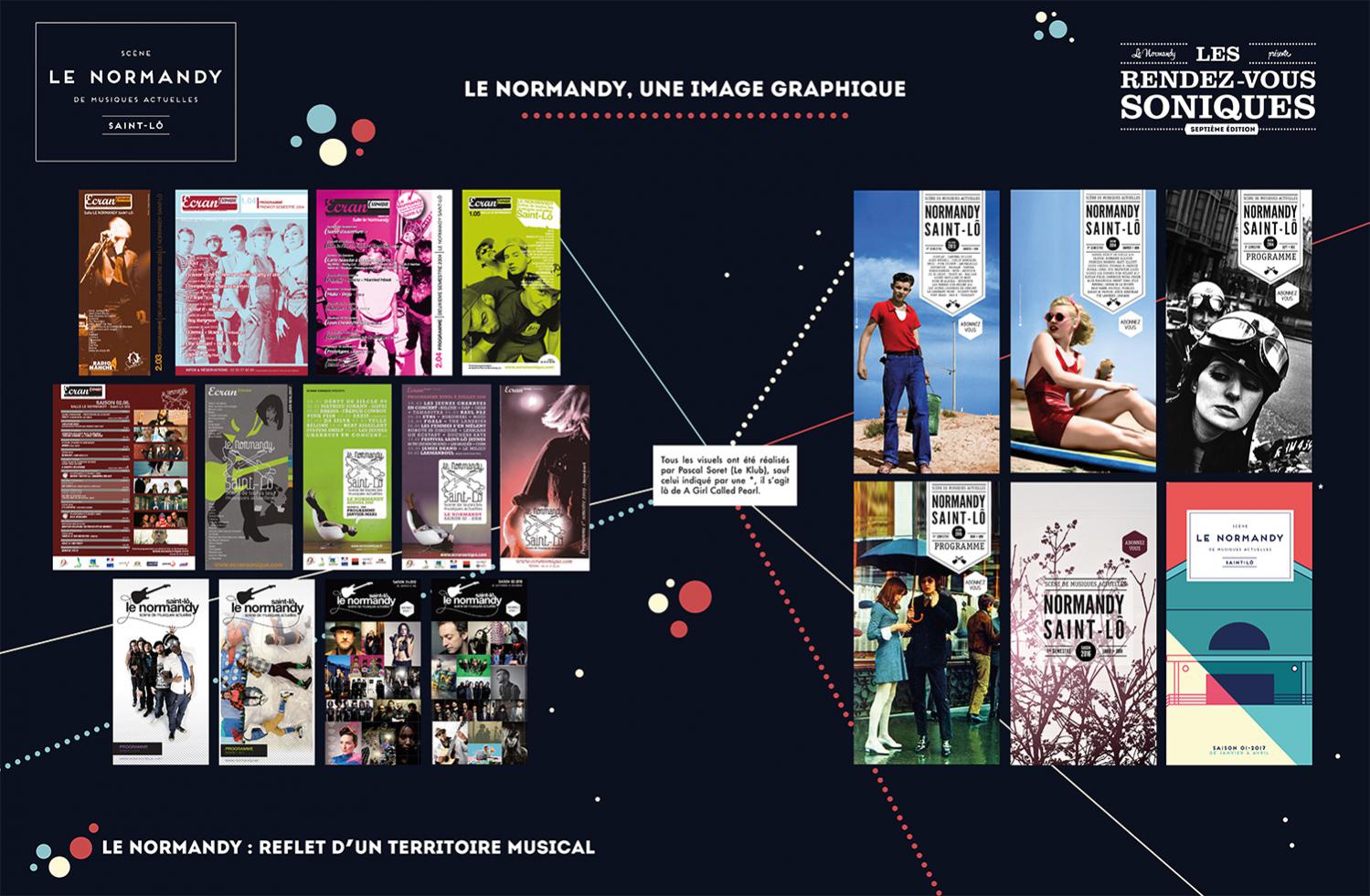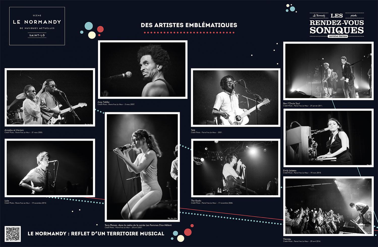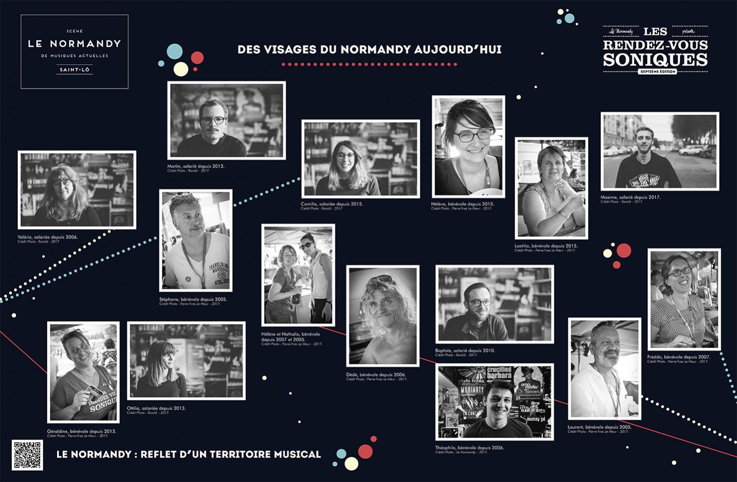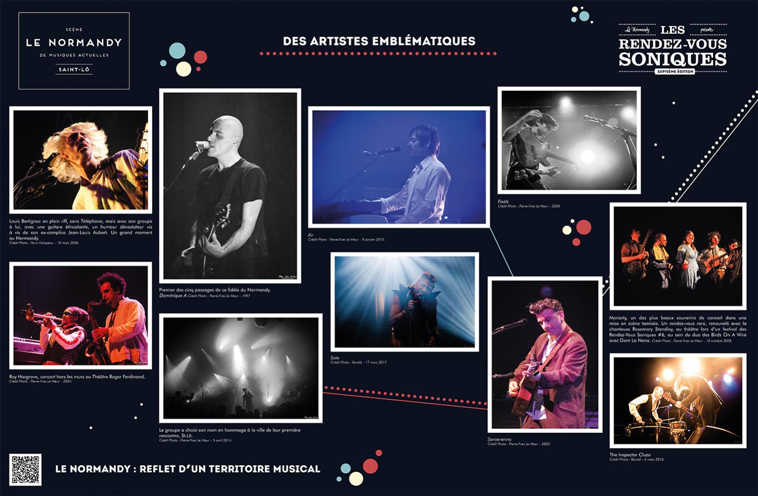L’exposition retrace l’histoire de l’Association Écran Sonique, du Normandy et des Rendez-Vous Soniques. Cette histoire qui a débuté dans le milieu des années 90 et se poursuit encore aujourd’hui, a rassemblé un grand nombre d’individus autour d’une passion commune : la musique. Nous avons essayé de dresser un portrait le plus fidèle possible de ces 22 ans, cependant l’exercice est frustrant : impossible de tout raconter, de tout montrer.
