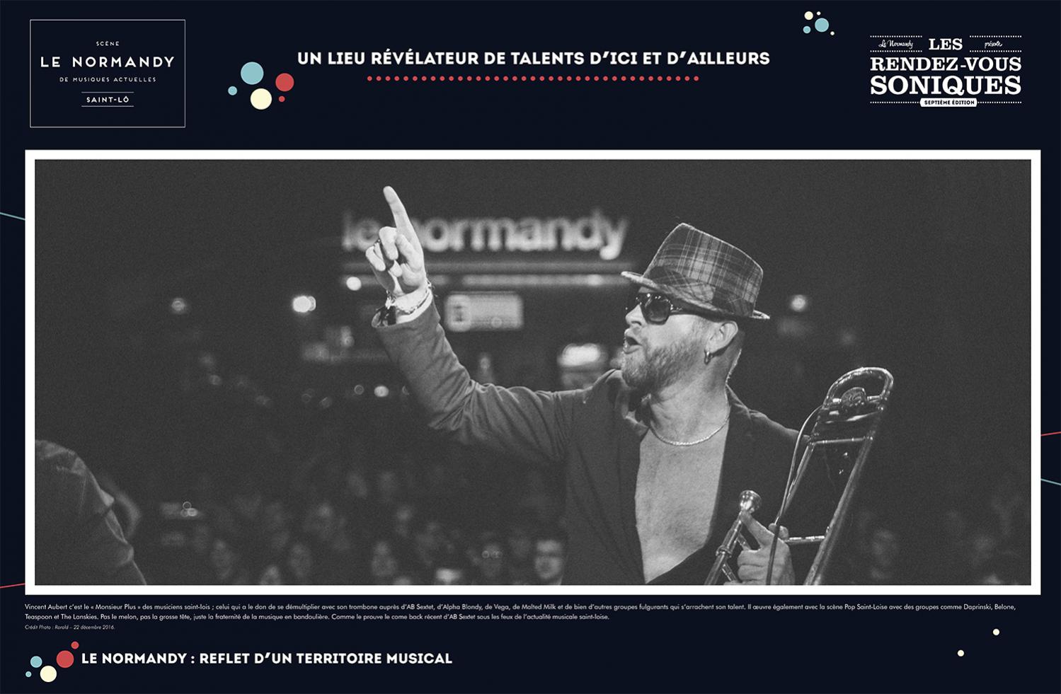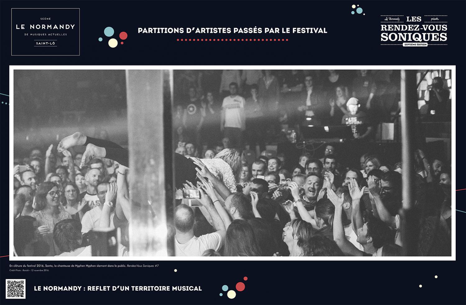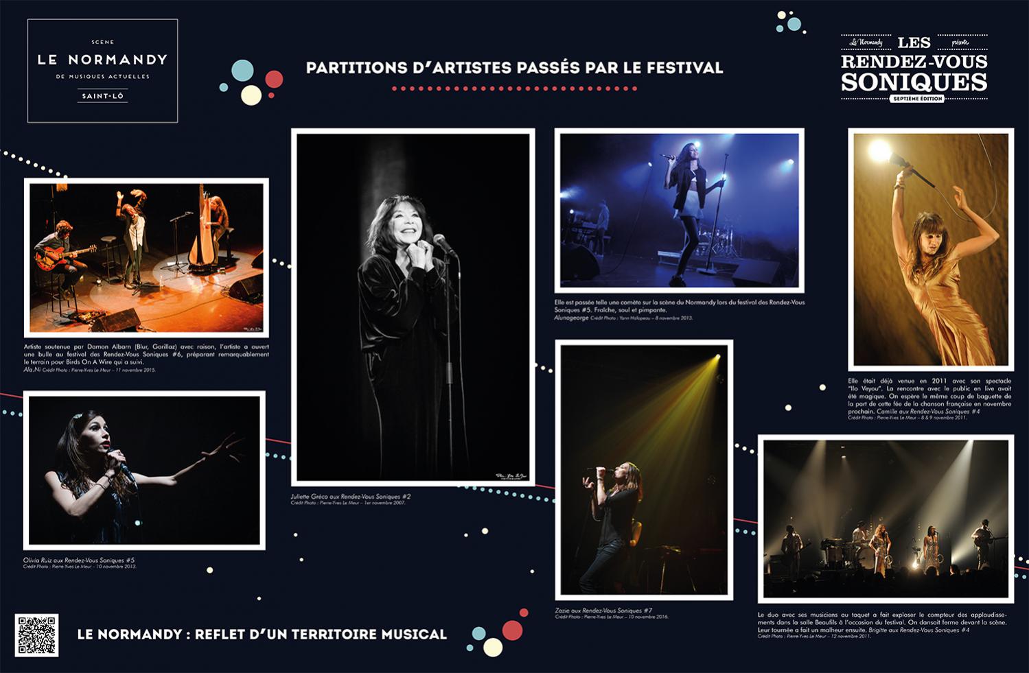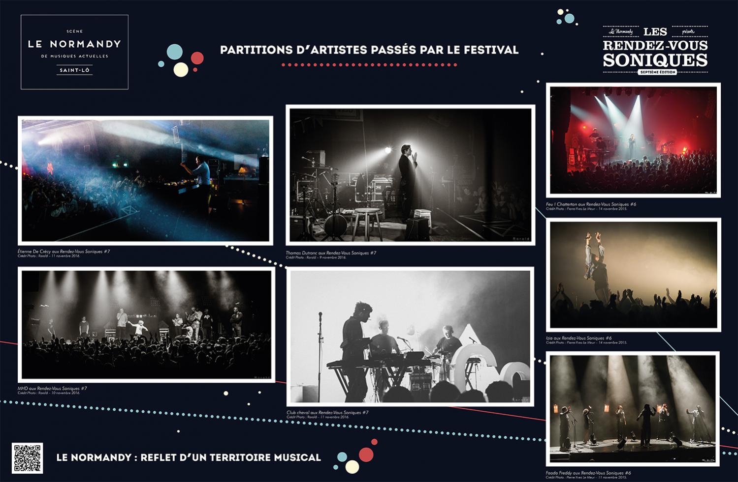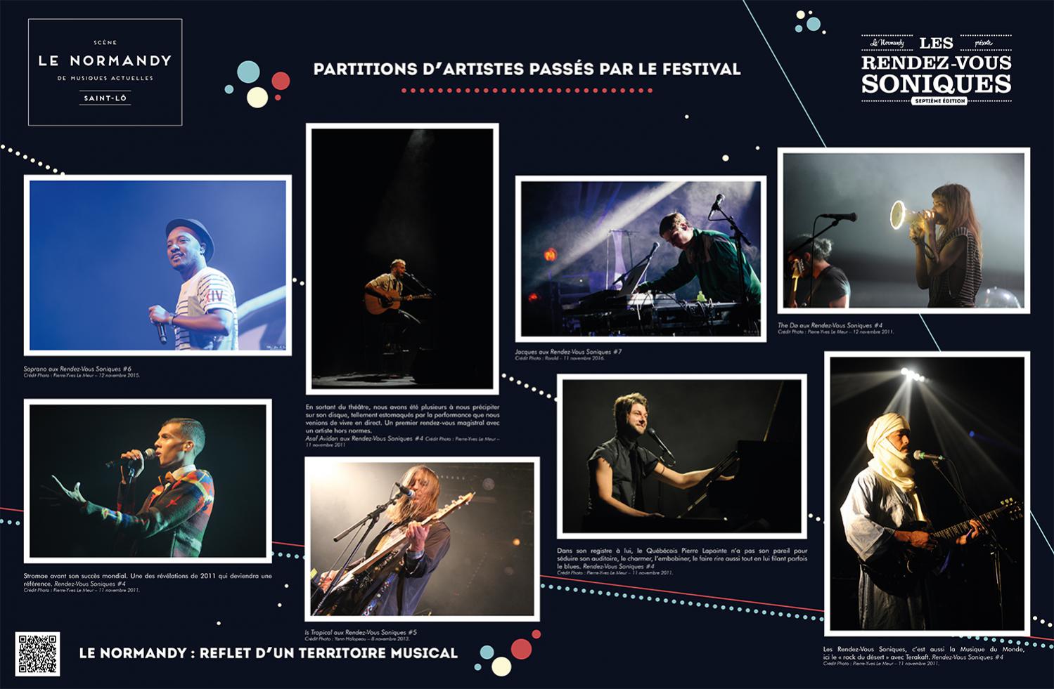 L’exposition retrace l’histoire de l’Association Écran Sonique, du Normandy et des Rendez-Vous Soniques. Cette histoire qui a débuté dans le milieu des années 90 et se poursuit encore aujourd’hui, a rassemblé un grand nombre d’individus autour d’une passion commune : la musique. Nous avons essayé de dresser un portrait le plus fidèle possible de ces 22 ans, cependant l’exercice est frustrant : impossible de tout raconter, de tout montrer.